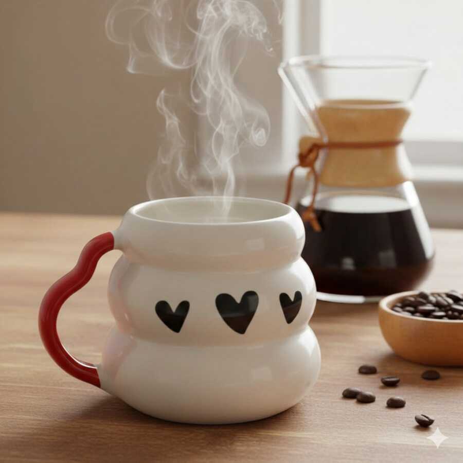 SİYAH KALP KIRMIZI KALP -KOVAN KUPA - KIRMIZI SAP