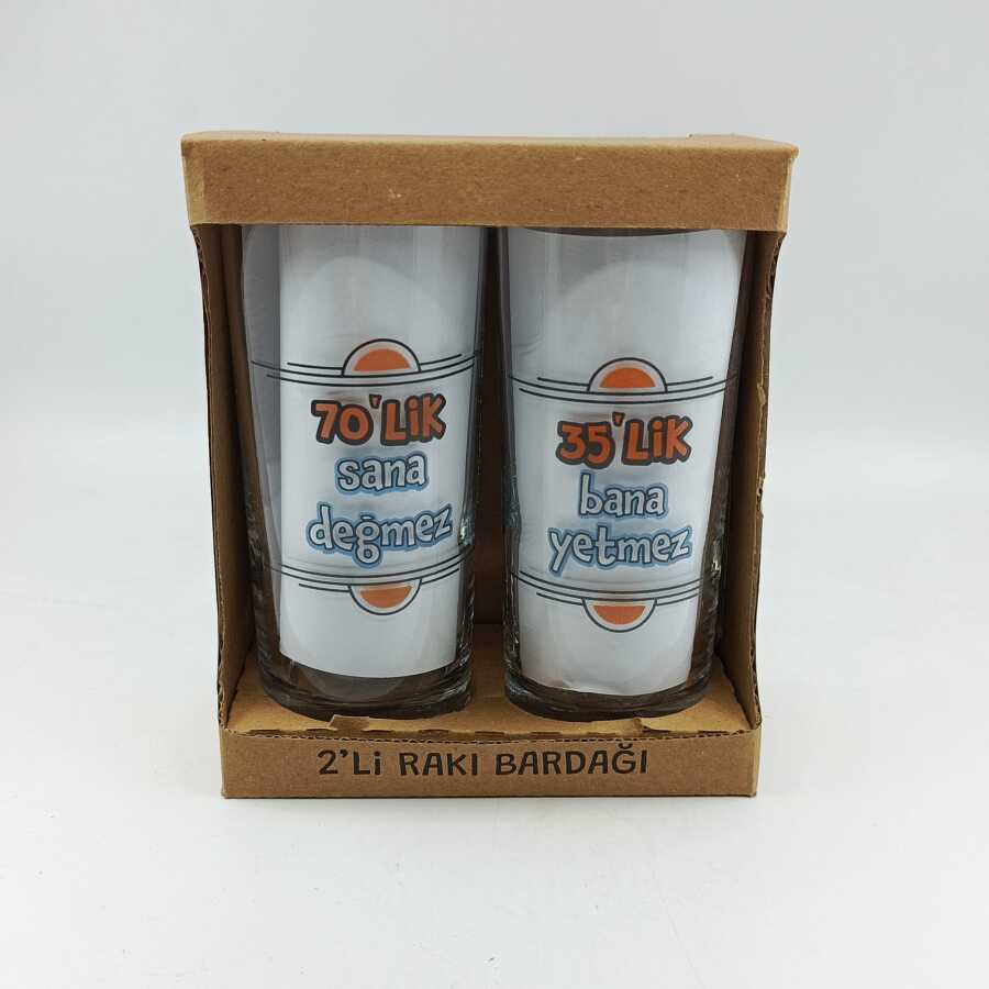 35LİK BANA YETMEZ & 70LİK SANA DEĞMEZ-İKİLİ RAKI BARDAĞI - ŞEFFAF