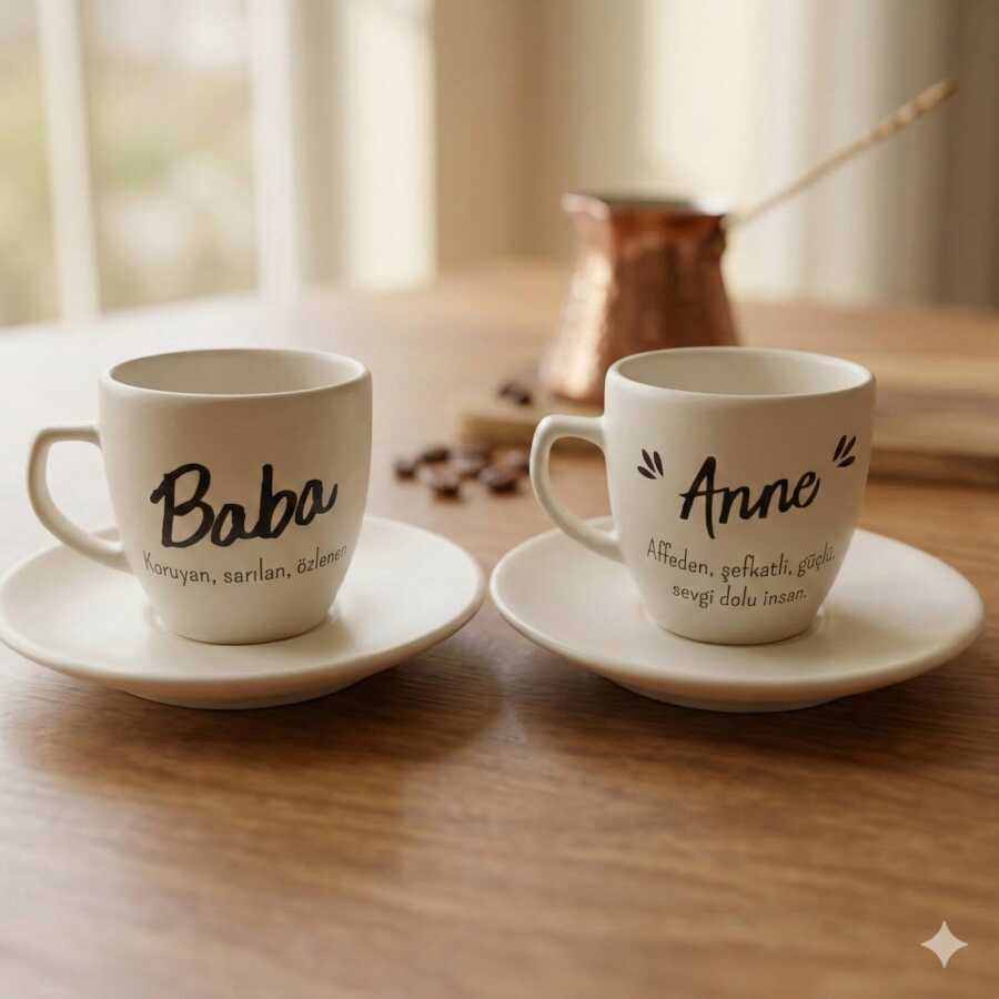 ANNE & BABA-İKİLİ TÜRK KAHVESİ FİNCANI - TRANSPARAN
