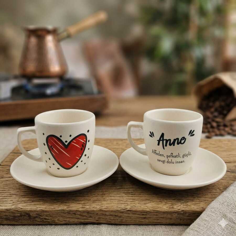 ANNE & BENEKLİ KALP-İKİLİ TÜRK KAHVESİ FİNCANI - TRANSPARAN