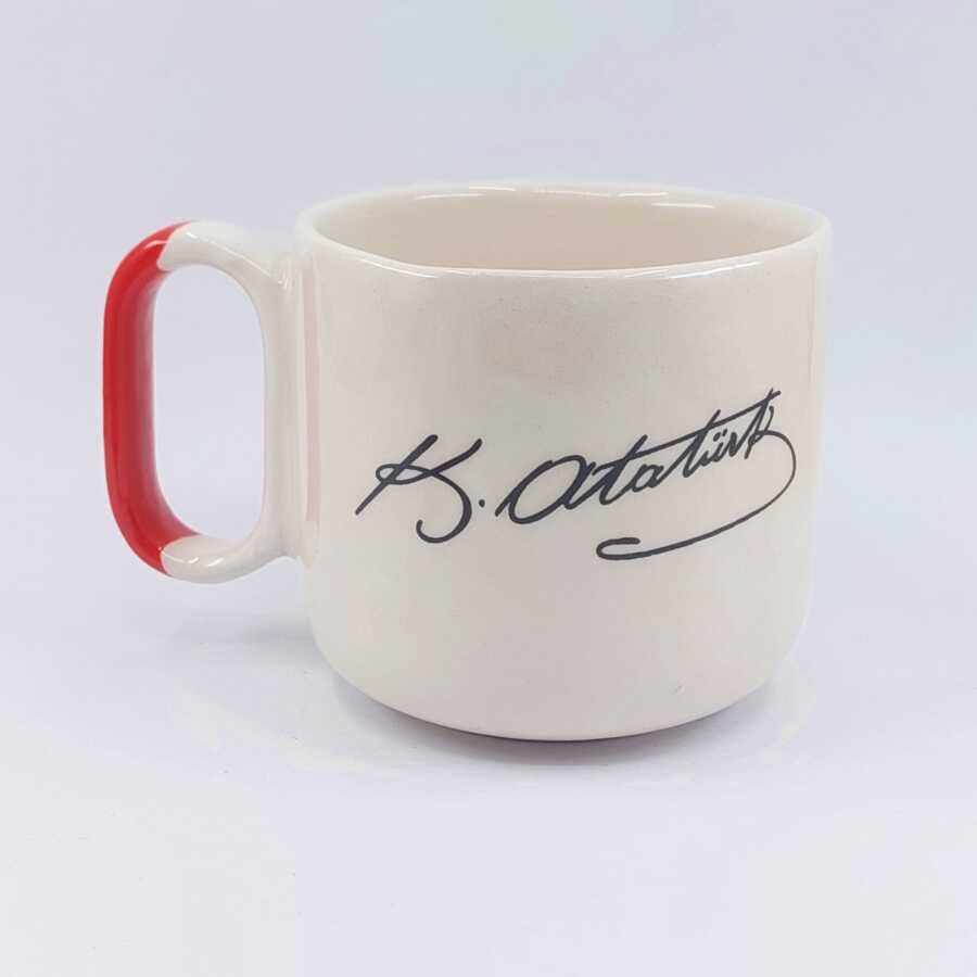 ATATÜRK İMZA - ARYA ÇAY FİNCANI - KIRMIZI SAP