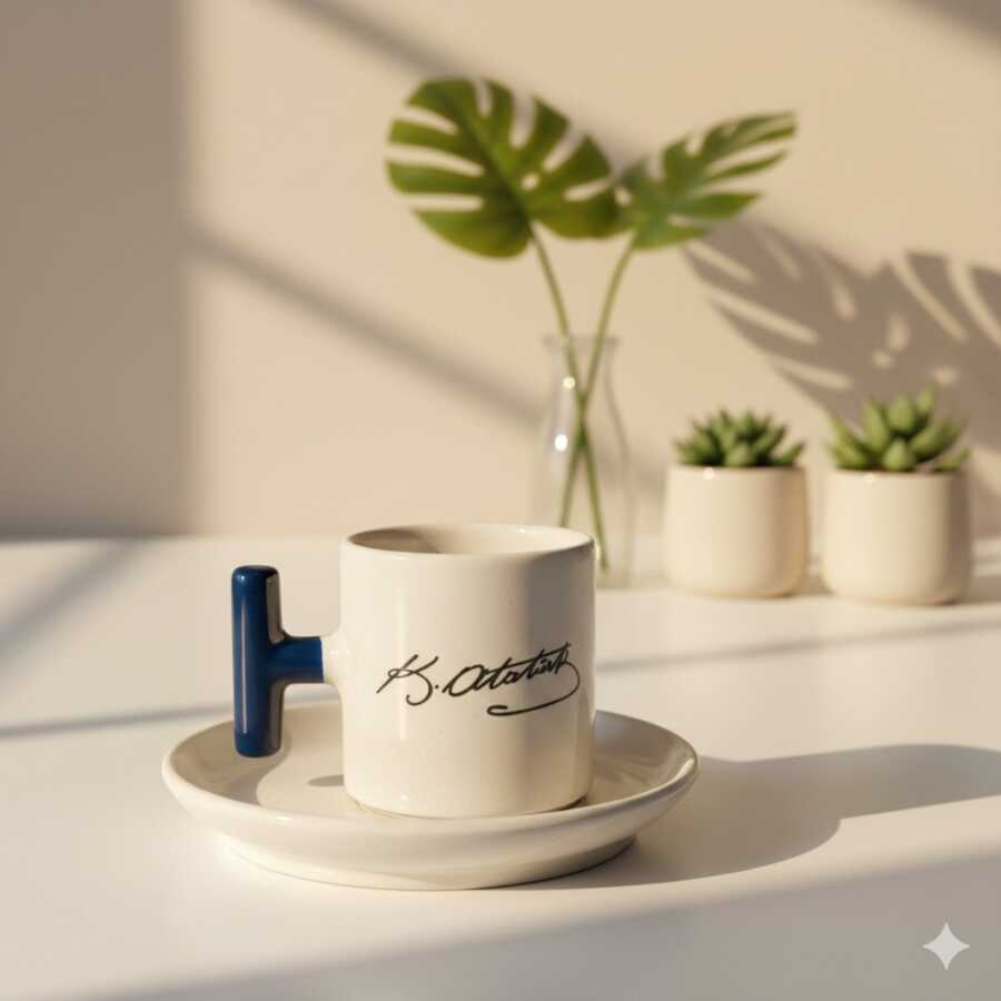 ATATÜRK İMZA-T TÜRK KAHVESİ FİNCANI - KOBALT SAP