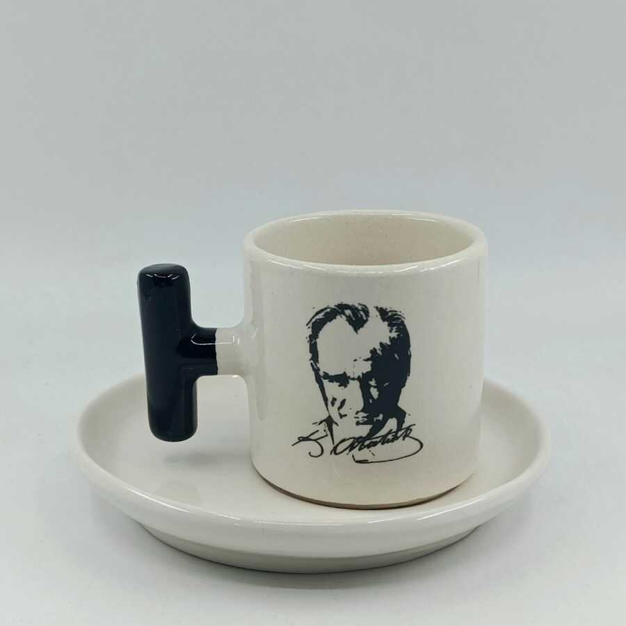 ATATÜRK PORTRE-T TÜRK KAHVESİ FİNCANI - SİYAH SAP