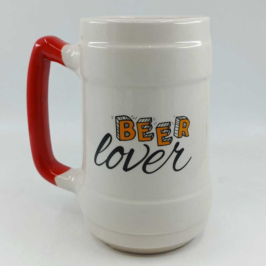 BEER LOVER-SERAMİK BİRA BARDAĞI - KIRMIZI SAP