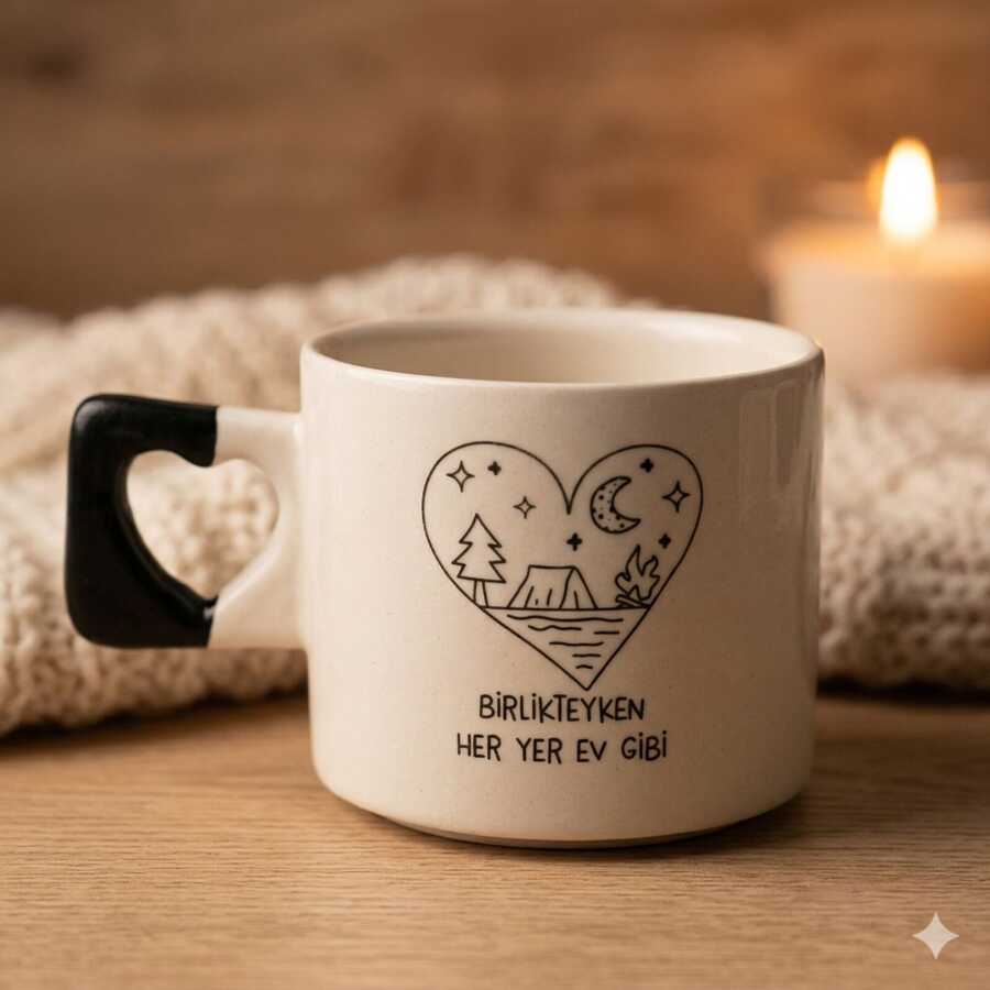 BİRLİKTEYKEN HER YER EV GİBİ-KALP KUPA - SİYAH SAP