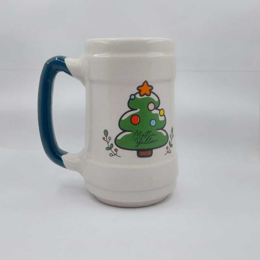 ÇAM AĞACI MUTLU YILLAR-SERAMİK BİRA BARDAĞI - YEŞİL SAP