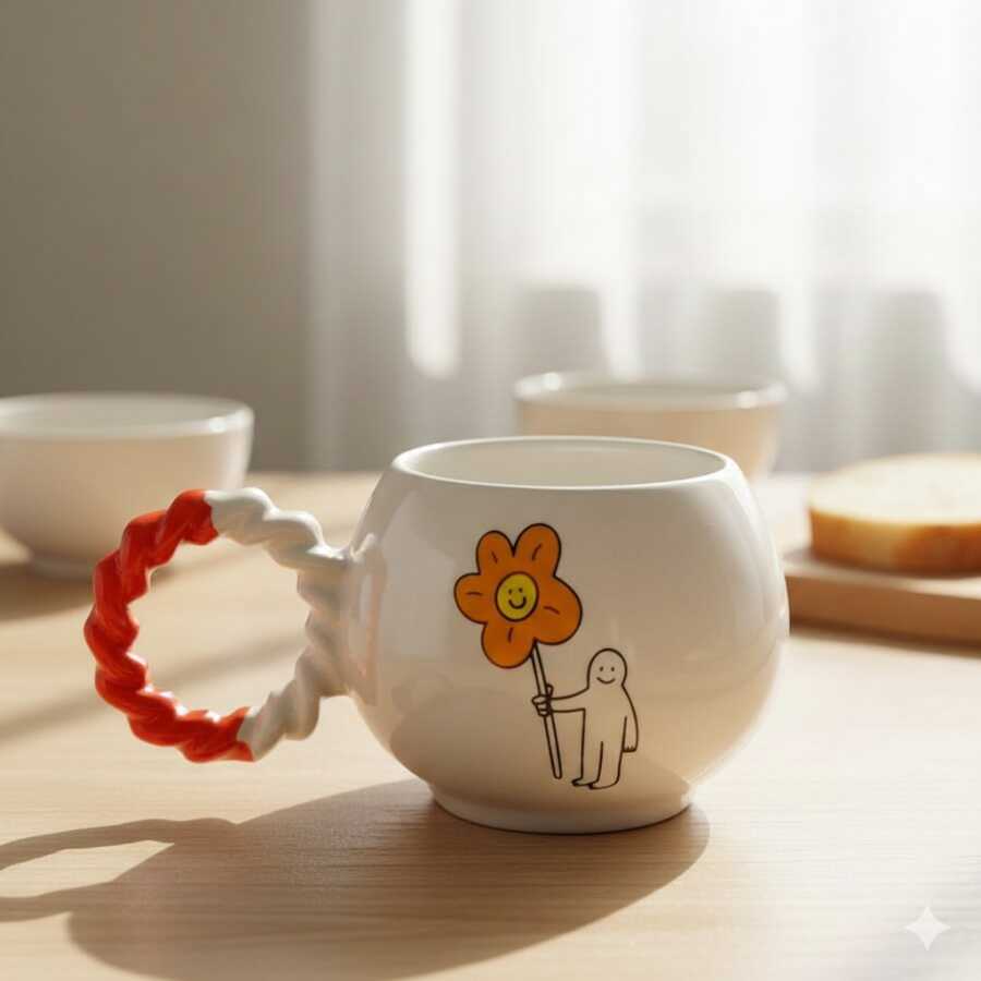 ÇİÇEK TUTAN GÜLEN YÜZ-BALONCUK KUPA - TURUNCU SAP