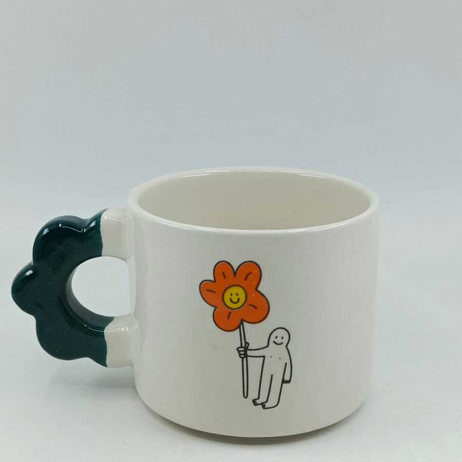ÇİÇEK TUTAN ADAM-PAPATYA KUPA - YEŞİL SAP