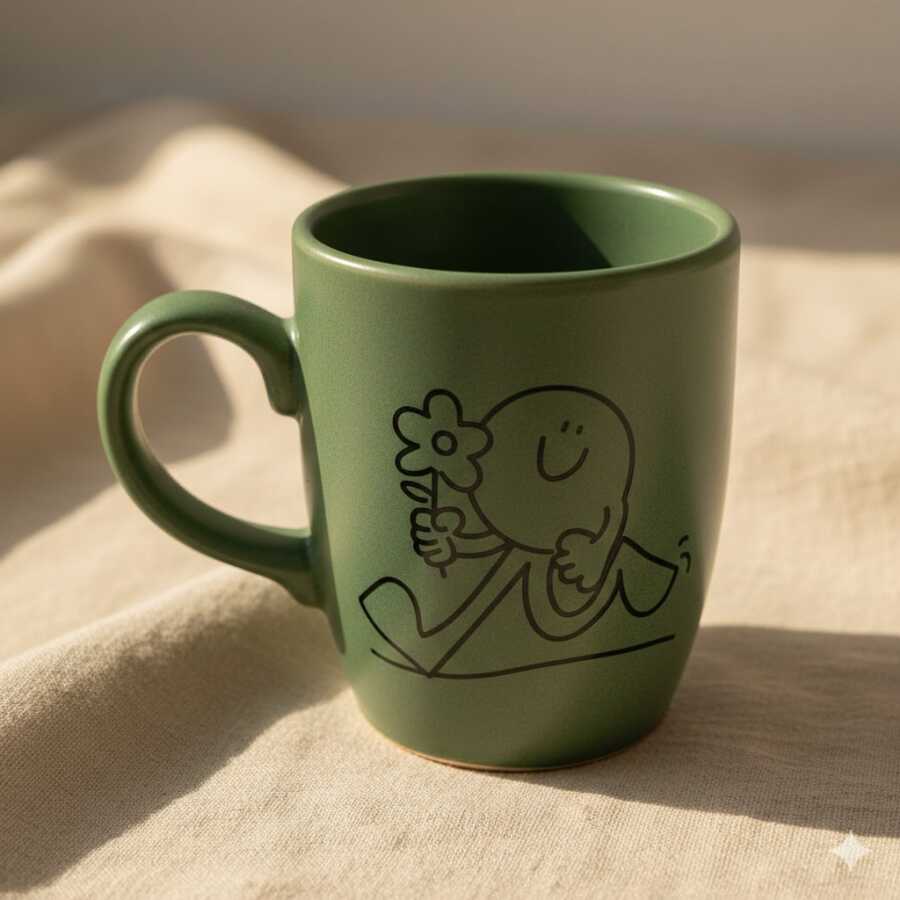 Bİ KAHVE?-OVAL KUPA - YEŞİL SAP YEŞİL GÖVDE YEŞİL İÇ