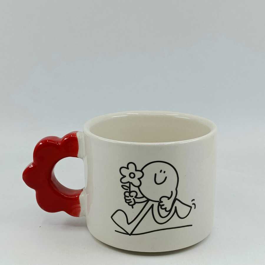 ÇİÇEK TUTAN GÜLEN YÜZ-PAPATYA KUPA - KIRMIZI SAP