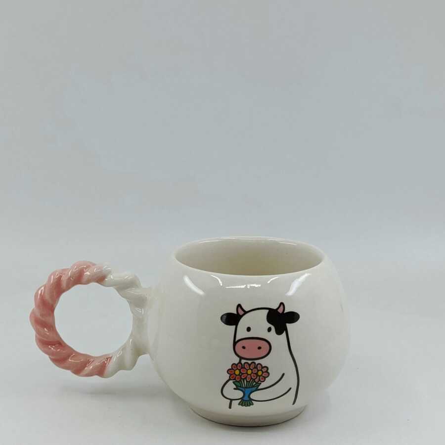 ÇİÇEK TUTAN İNEK-ÖRGÜLÜ BALONCUK KUPA - PEMBE SAP