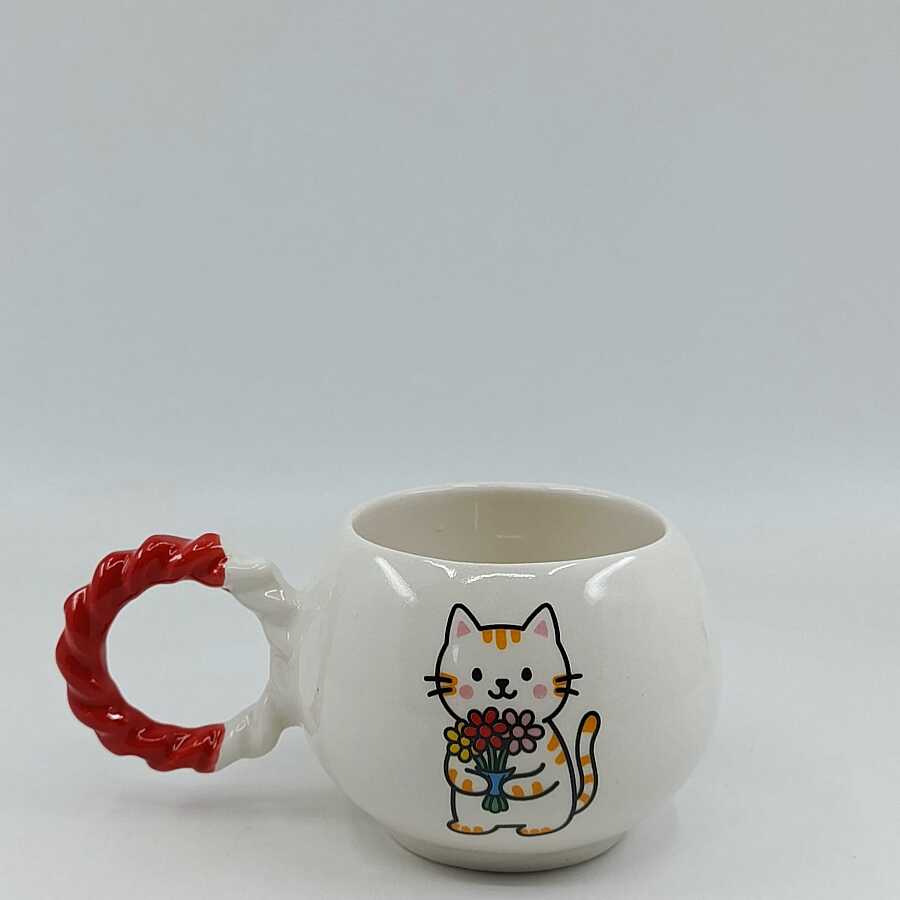 ÇİÇEK TUTAN KEDİ-BALONCUK KUPA - KIRMIZI SAP