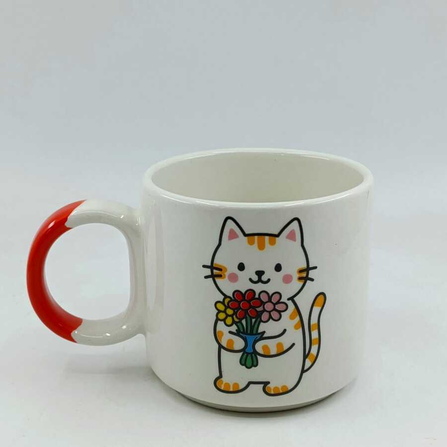 ÇİÇEK TUTAN KEDİ-D KUPA - TURUNCU SAP