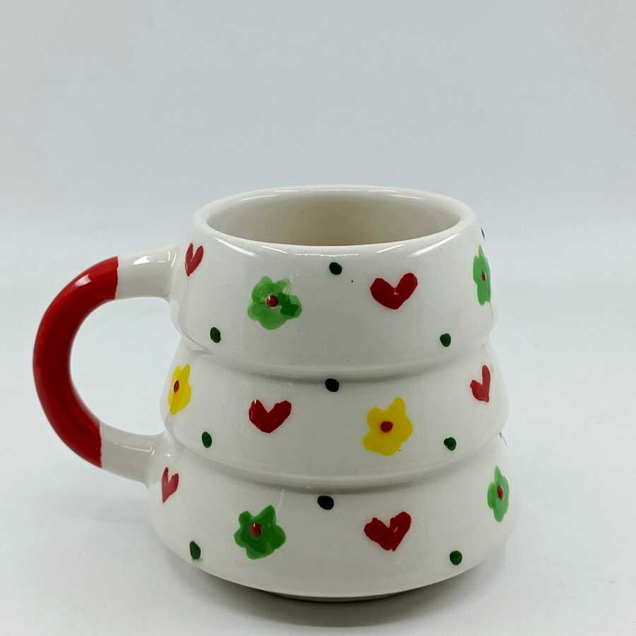 ÇİÇEKLER VE KALPLER - 3D-ÇAM KUPA - 3D