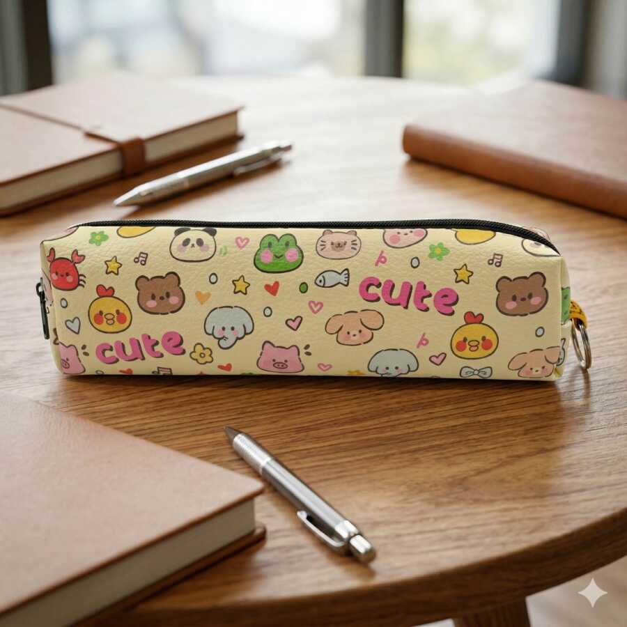CUTE ANIMALS-DERİ KALEM KUTU - TEKLİ