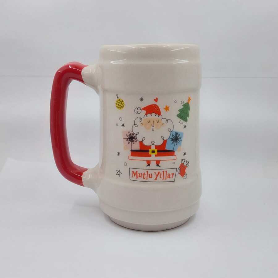 DAĞINIK NOEL BABA MUTLU YILLAR-SERAMİK BİRA BARDAĞI - KIRMIZI SAP