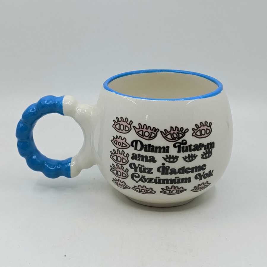DİLİMİ TUTARIM YÜZ İFADEME ÇÖZÜM YOK-PUF KUPA - MAVİ SAP MAVİ TURNET