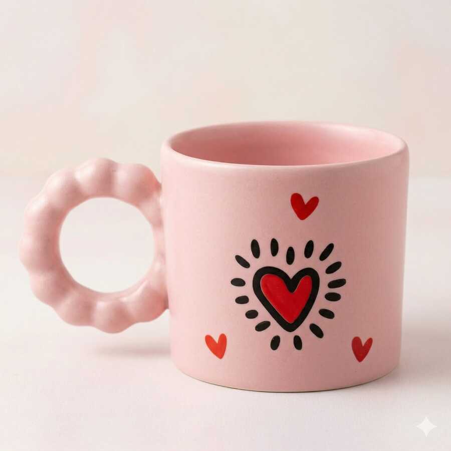 KIRMIZI EL ÇİZİMİ KURDELE-PRENSES KUPA - PEMBE GÖVDE PEMBE SAP