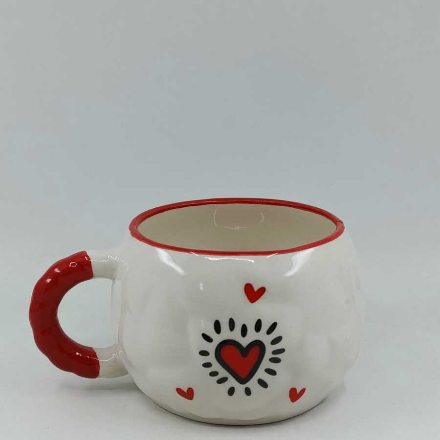 SİYAH KALP KIRMIZI KALP -TONTİK KUPA - KIRMIZI SAP