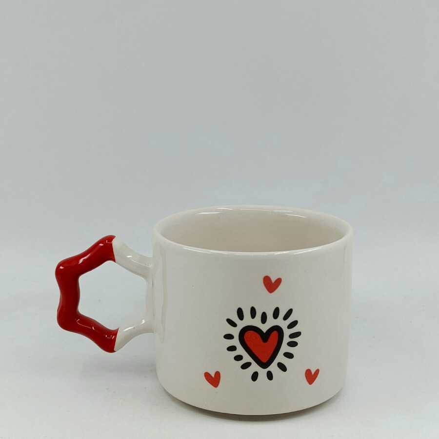 KIRMIZI EL ÇİZİMİ KURDELE-YILDIZ KUPA - KIRMIZI SAP
