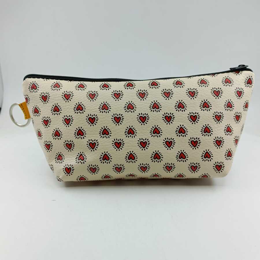 EFEKTLİ KIRMIZI KALPLER-MAKYAJ ÇANTASI - TEKLİ