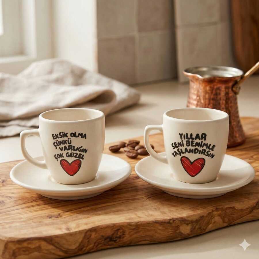 EKSİK OLMA & YILLAR SENİ BENİMLE YAŞLANDIRSIN-İKİLİ TÜRK KAHVESİ FİNCANI - TRANSPARAN