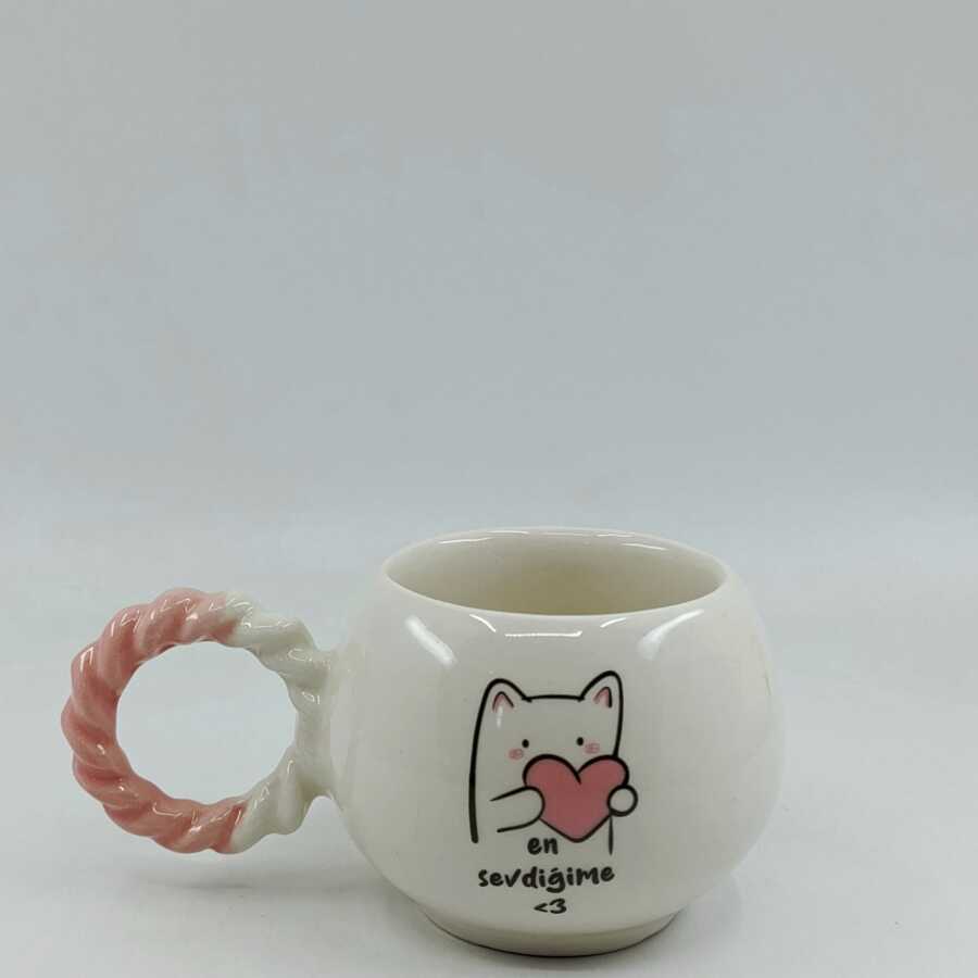 PEMBE EL ÇİZİMİ KURDELE-ÖRGÜLÜ BALONCUK KUPA - PEMBE SAP
