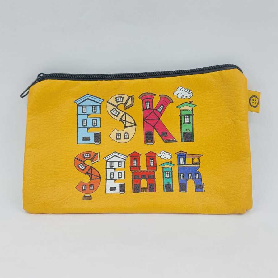 ESKİŞEHİR TİPOGRAFİ-DERİ CÜZDAN - TEKLİ TURUNCU ZEMİN