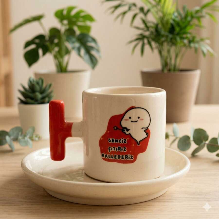 GENCİZ ÇITIRIZ HALLEDERİZ-T TÜRK KAHVESİ FİNCANI - KIRMIZI SAP