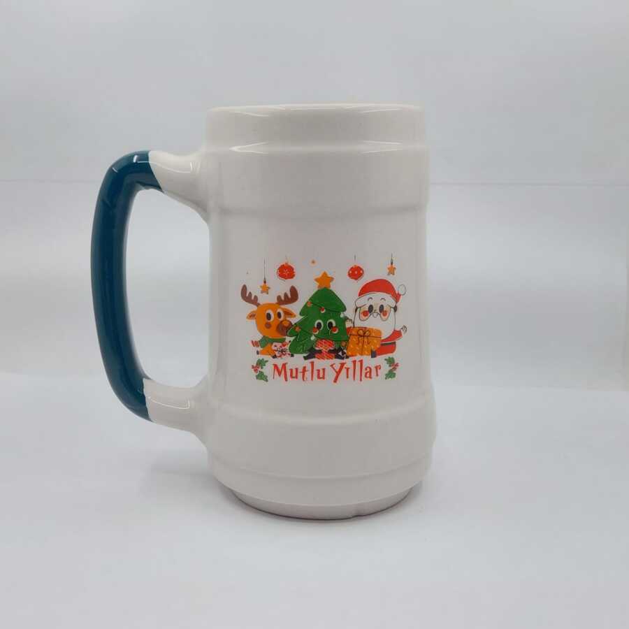 GEYİK ÇAM AĞACI NOEL BABA MUTLU YILLAR-SERAMİK BİRA BARDAĞI - YEŞİL SAP