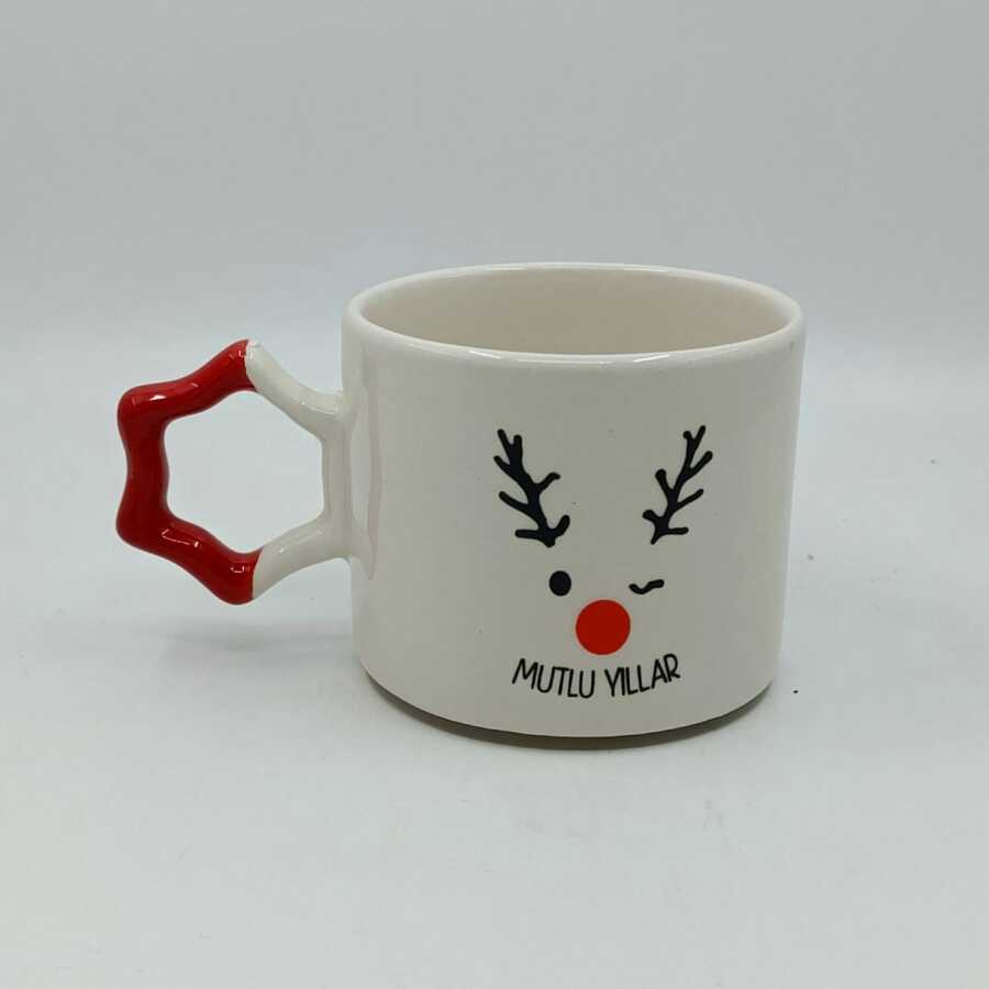 MİNİK GEYİK MUTLU YILLAR-YILDIZ KUPA - KIRMIZI SAP