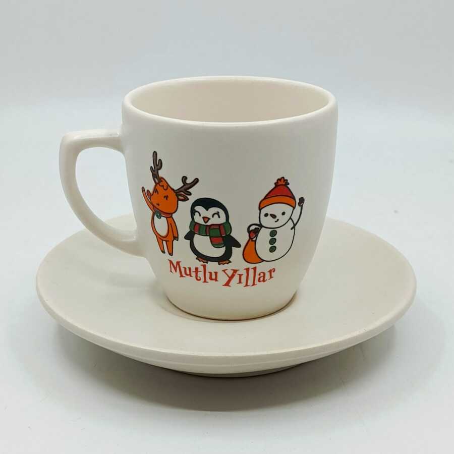 GEYİK PENGUEN KARDANADAM MUTLU YILLAR-KLASİK TÜRK KAHVESİ FİNCANI - TRANSPARAN GÖVDE