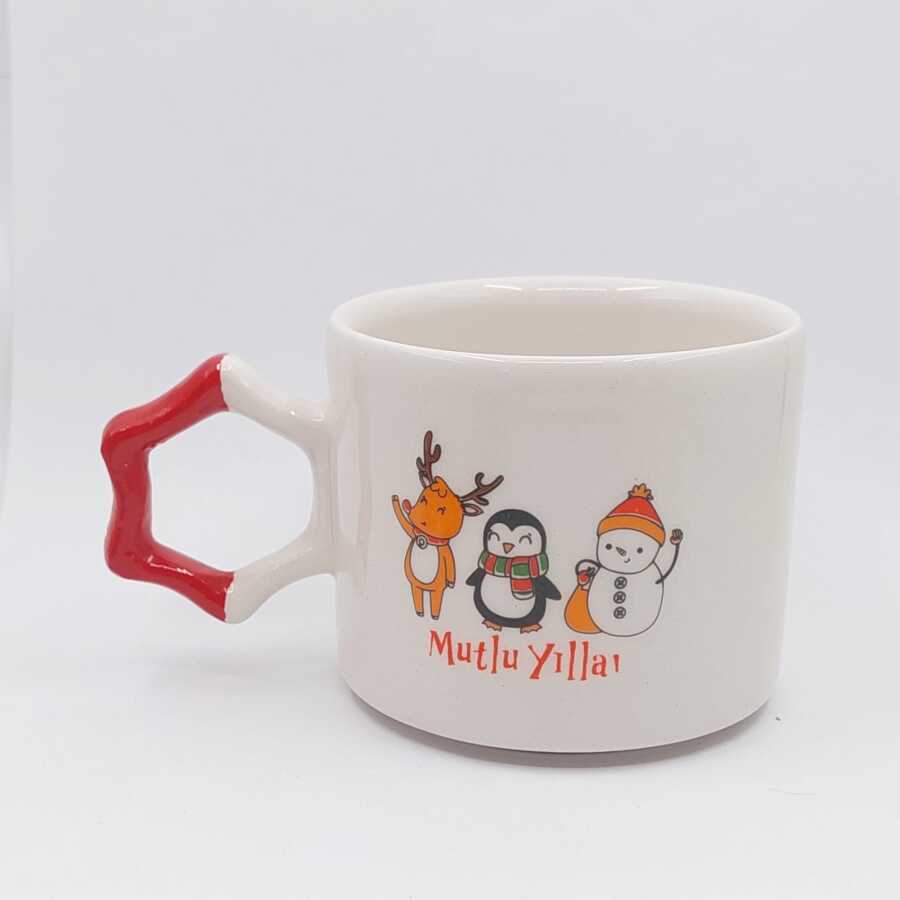 GEYİK PENGUEN KARDANADAM MUTLU YILLAR-YILDIZ KUPA - KIRMIZI SAP