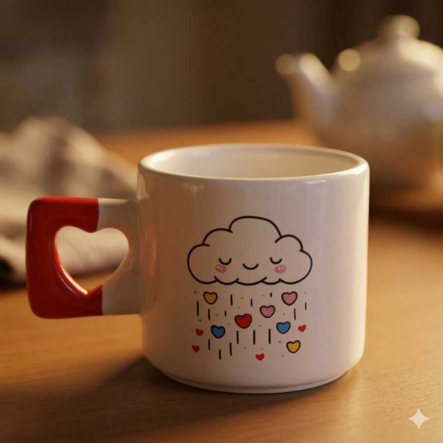 RENKLİ KALP LOVE YOU-KALP KUPA - KIRMIZI SAP
