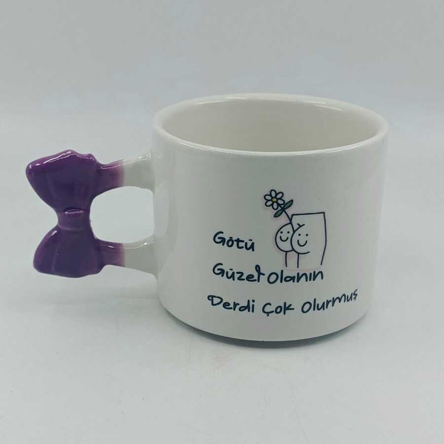 KAHVE İÇ DİK DUR-KURDELE KUPA - MOR SAP
