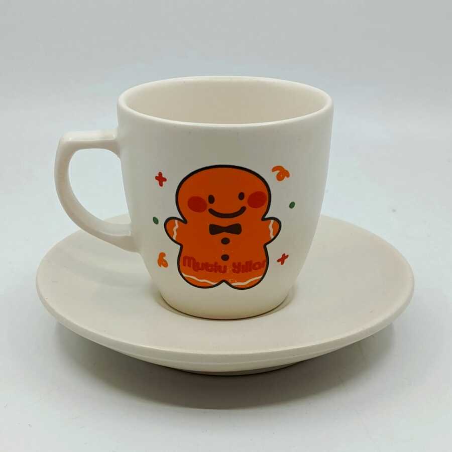 IŞIKLI KURABİYE ADAMLAR MUTLU YILLAR-KLASİK TÜRK KAHVESİ FİNCANI - TRANSPARAN GÖVDE
