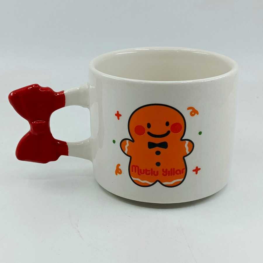 IŞIKLI KURABİYE ADAMLAR MUTLU YILLAR-KURDELE KUPA - KIRMIZI SAP