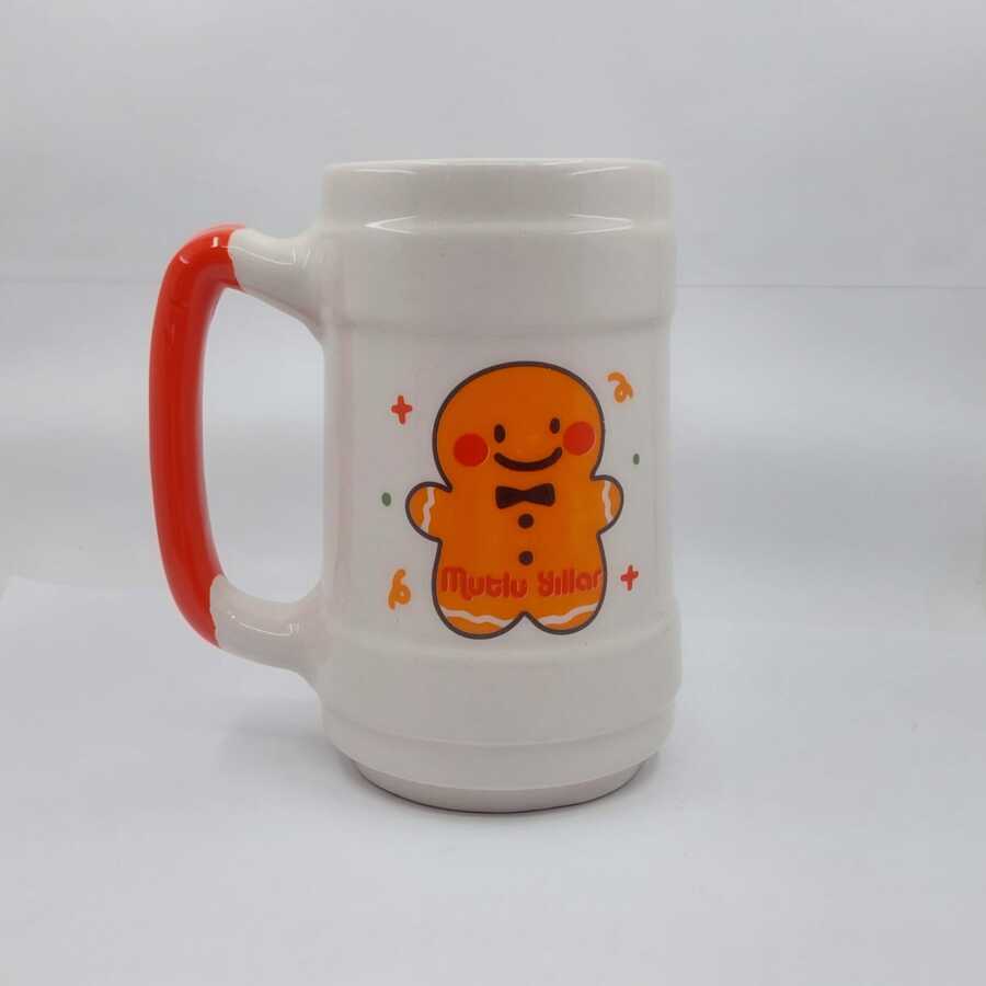 IŞIKLI KURABİYE ADAMLAR MUTLU YILLAR-SERAMİK BİRA BARDAĞI - KIRMIZI SAP