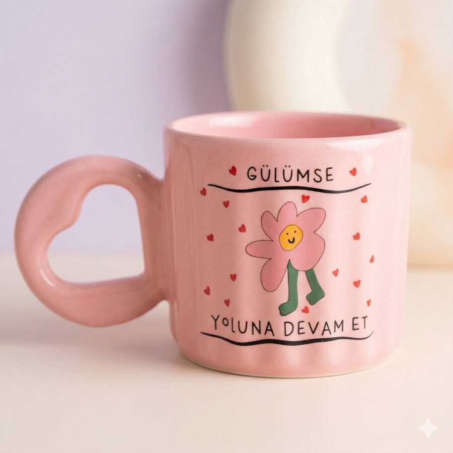 RENKLİ KALP LOVE YOU-EROS KUPA - PEMBE SAP PEMBE GÖVDE