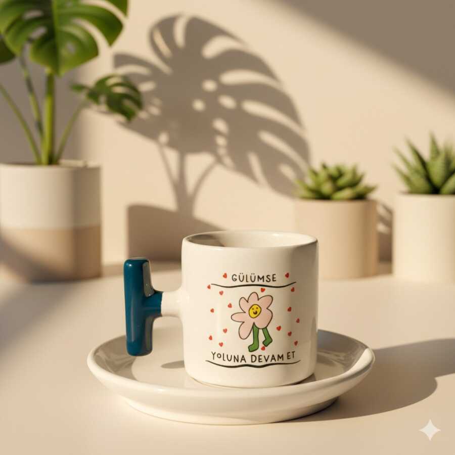 GÜLÜMSE YOLUNA DEVAM ET-T TÜRK KAHVESİ FİNCANI - KOBALT SAP