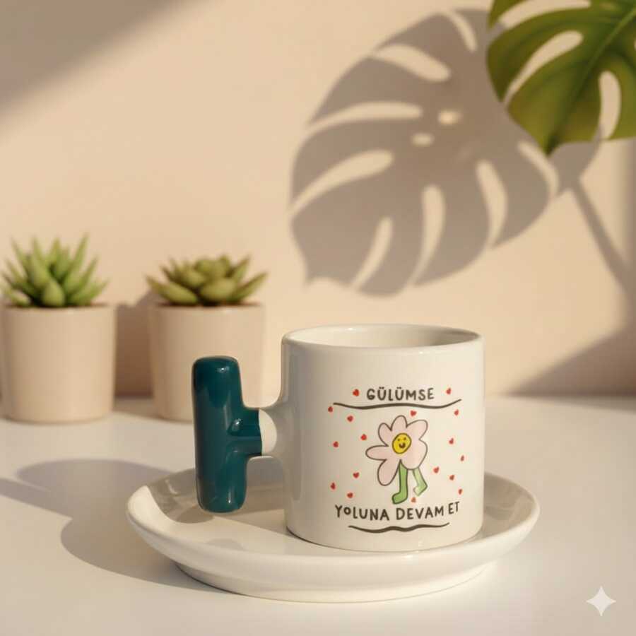 GÜLÜMSE YOLUNA DEVAM ET-T TÜRK KAHVESİ FİNCANI - YEŞİL SAP