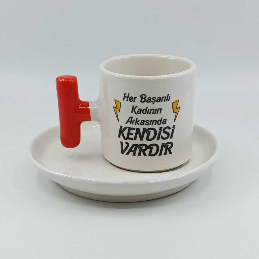 HER BAŞARILI KADININ ARKASINDA-T TÜRK KAHVESİ FİNCANI - TURUNCU SAP