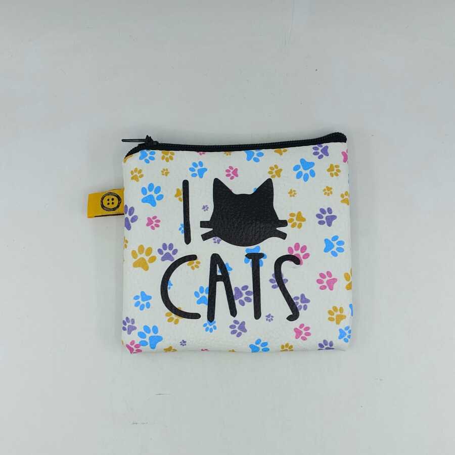 I LOVE CATS- RENKLİ-BOZUK PARA CÜZDANI - TEKLİ