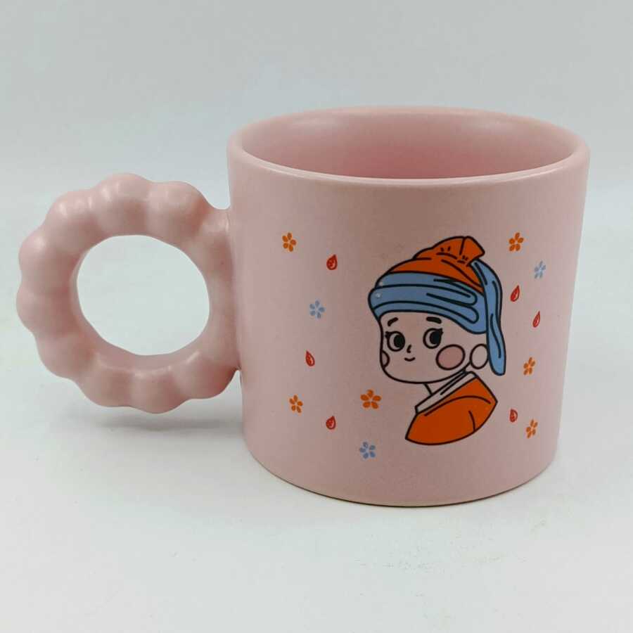 İNCİ KÜPELİ KIZ ÇİZİM-PRENSES KUPA - PEMBE GÖVDE PEMBE SAP