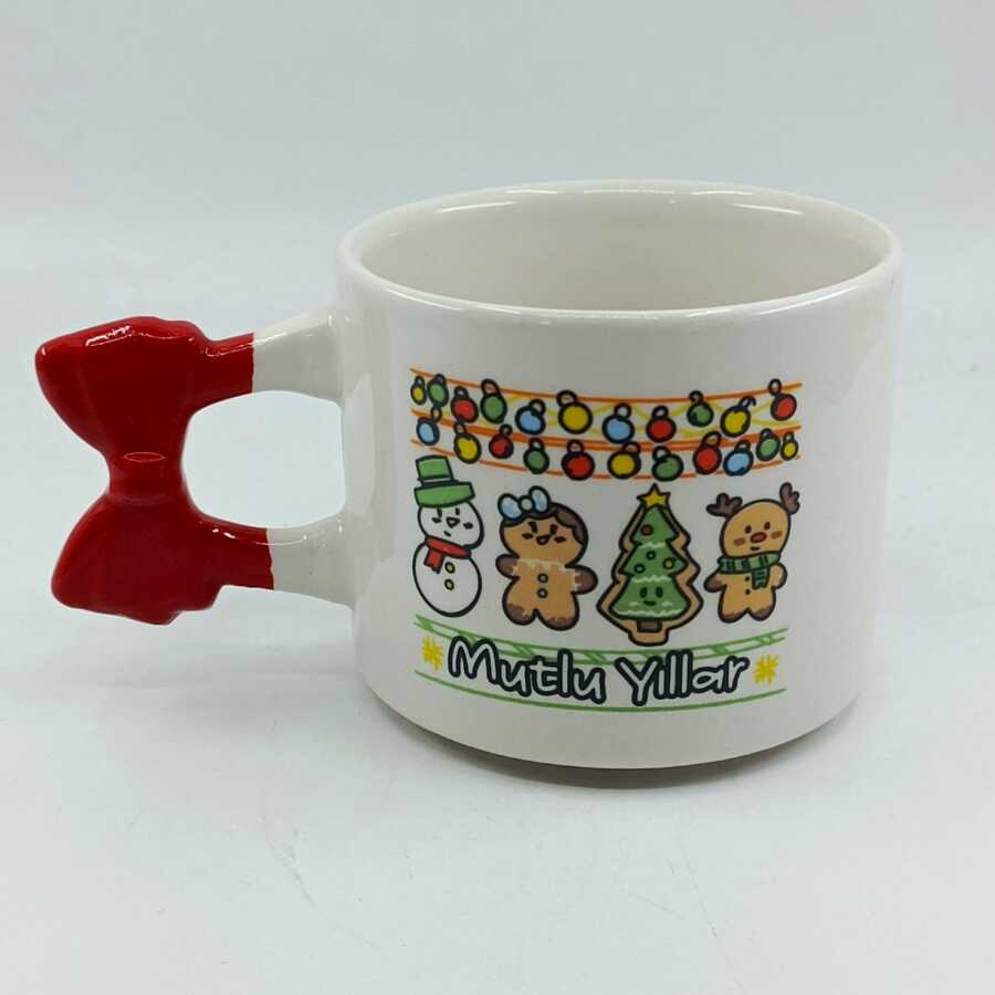 IŞIKLI KURABİYE ADAMLAR MUTLU YILLAR-KURDELE KUPA - KIRMIZI SAP