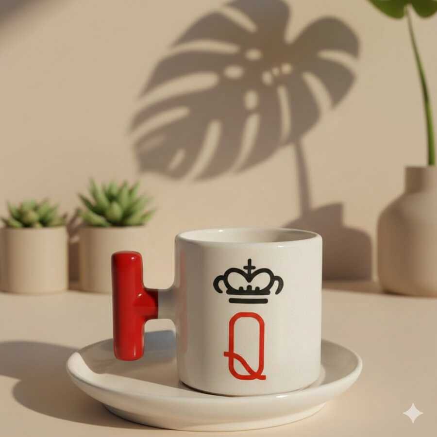 İSKAMBİL KRALİÇE-T TÜRK KAHVESİ FİNCANI - KIRMIZI SAP