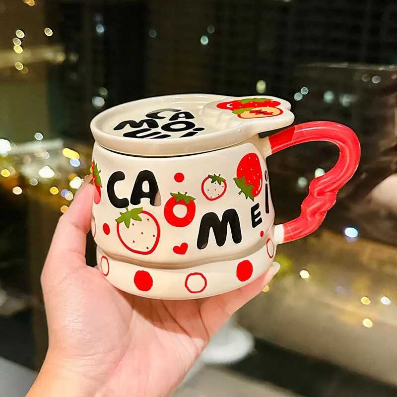 İTHAL KUPA-KAPAKLI MEYVELİ KUPA - ÇİLEK K-1-15