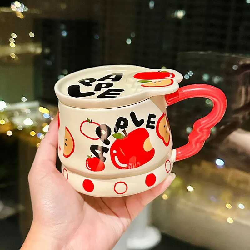 İTHAL KUPA-KAPAKLI MEYVELİ KUPA - ELMA K-1-16