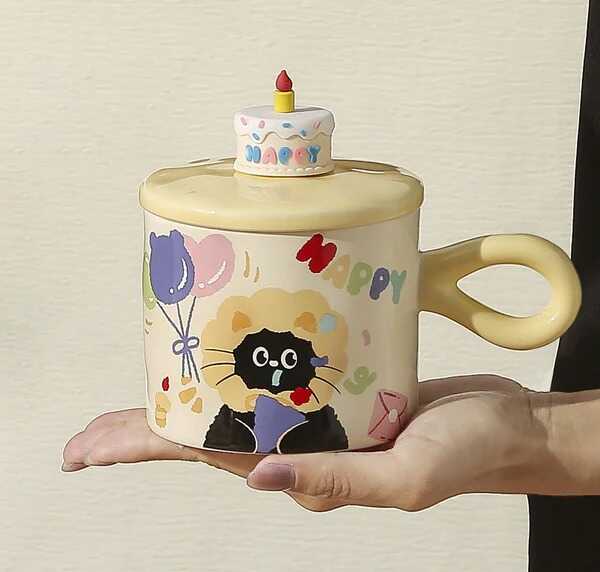 İTHAL KUPA-KAPAKLI PASTA FİGÜRLÜ KUPA - SARI K-1-19
