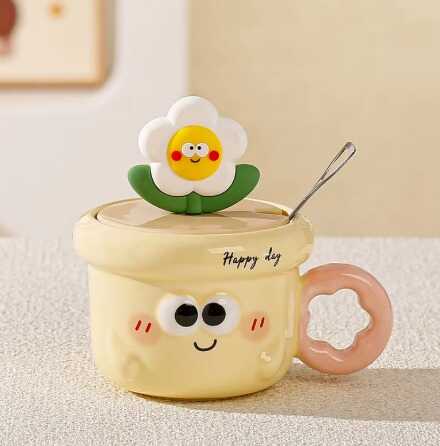 İTHAL KUPA-KAPAKLI&KAŞIKLI ÇİÇEK KUPA - SARI K-1-28